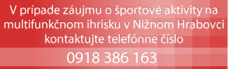V prípade záujmu o športové aktivity na multifunkčnom ihrisku v Nižnom Hrabovci kontaktujte telefóne číslo 0918 386 163.